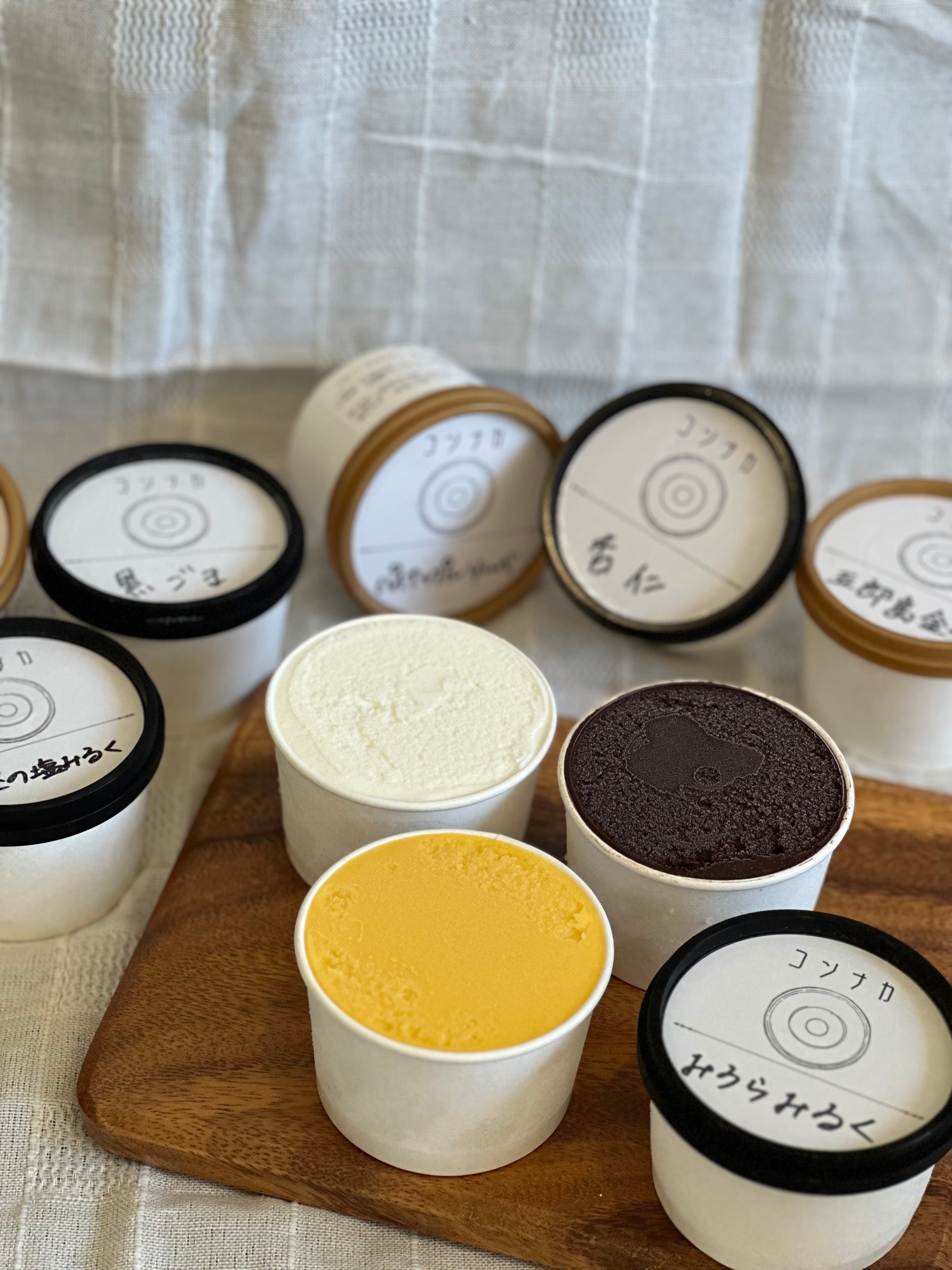 三浦市で絞られたこだわりの低温殺菌乳『みうらみるく』や『チョコ・チョコ・チョコ』など、当店自慢の8フレーバーをセットにいたしました。