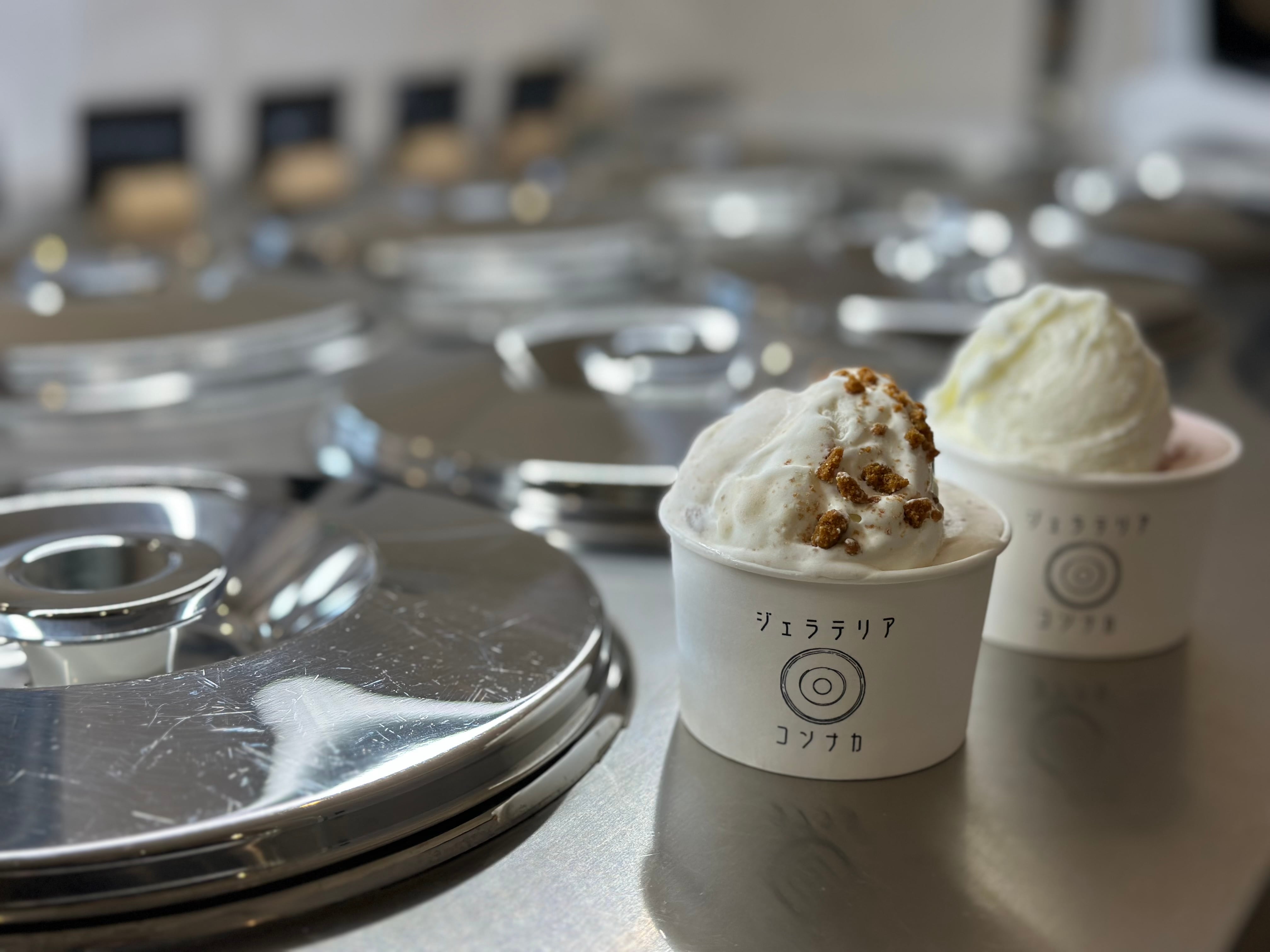 レアチーズケーキをそのままジェラートにしたような濃厚フレーバー「レアチーズビスコフ」をはじめ